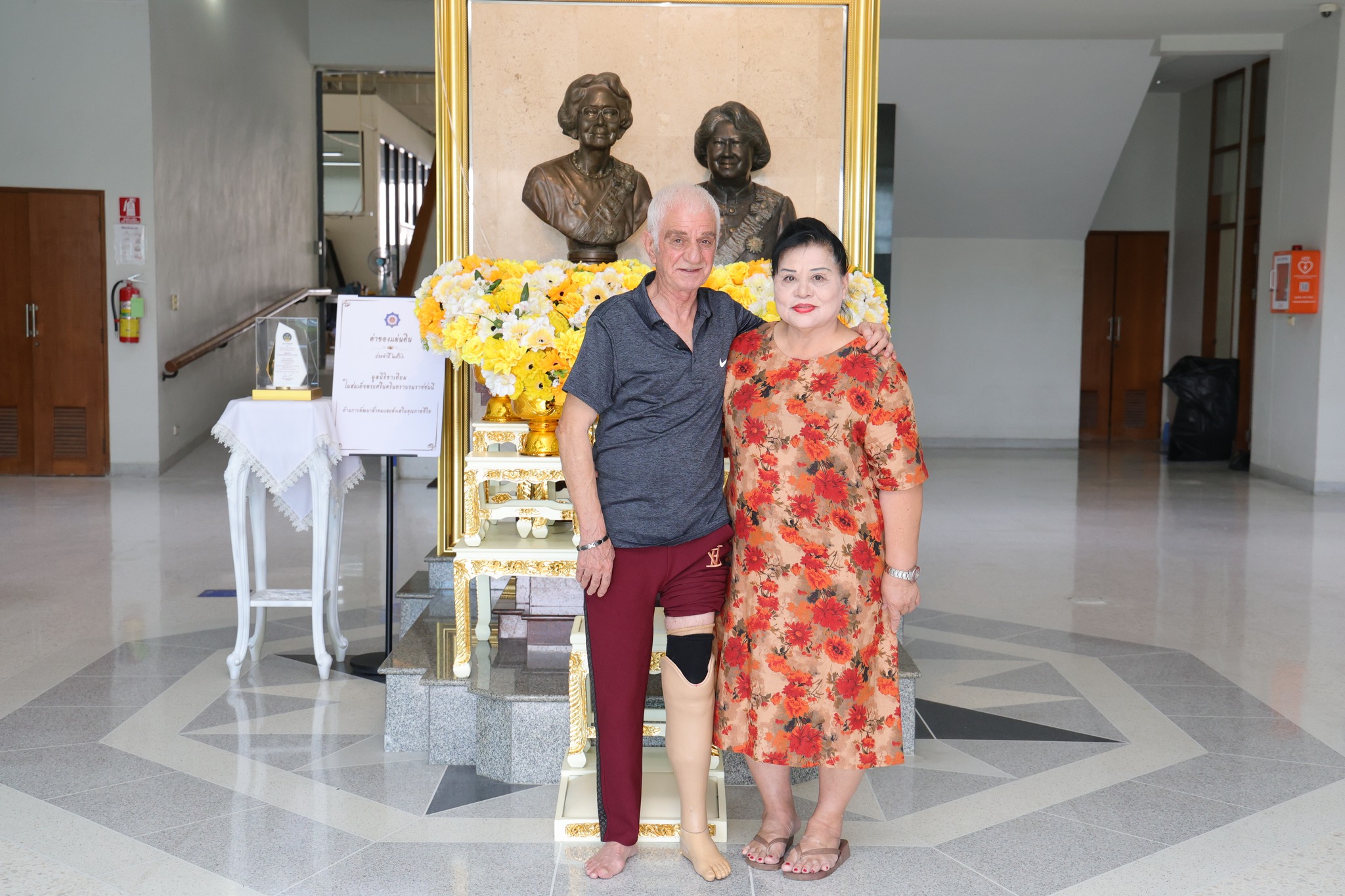 On July 1, 2025, the Prostheses Foundation of H.R.H. the Princess Mother provided a royal prosthetic leg to a 72-year-old Turkish man who traveled from Turkey to Thailand to receive prosthetic services at the Foundation’s main office in Chiang Mai. This was his first prosthetic leg, enabling him to walk independently without the need for walking aids after losing his lower leg due to vascular disease about seven months ago. . This journey was made possible through his Thai wife, who resides in Turkey. She had learned about the Foundation’s services from the Thai community abroad and decided to bring her husband to Thailand to receive a prosthetic leg. The Turkish man expressed his deep appreciation for the compassionate care provided by the Foundation—highlighting the expertise of the medical team and the dedication and skills of the prosthetic technicians, whose experience ensures that recipients are fitted with high-quality prosthetic legs. Thanks to their efforts, he has regained the confidence to return to his daily life. . The Prostheses Foundation remains committed to providing free prosthetic legs to all amputees with leg loss — regardless of nationality or religion—in accordance with the wish of its founder, H.R.H. the Princess Mother.